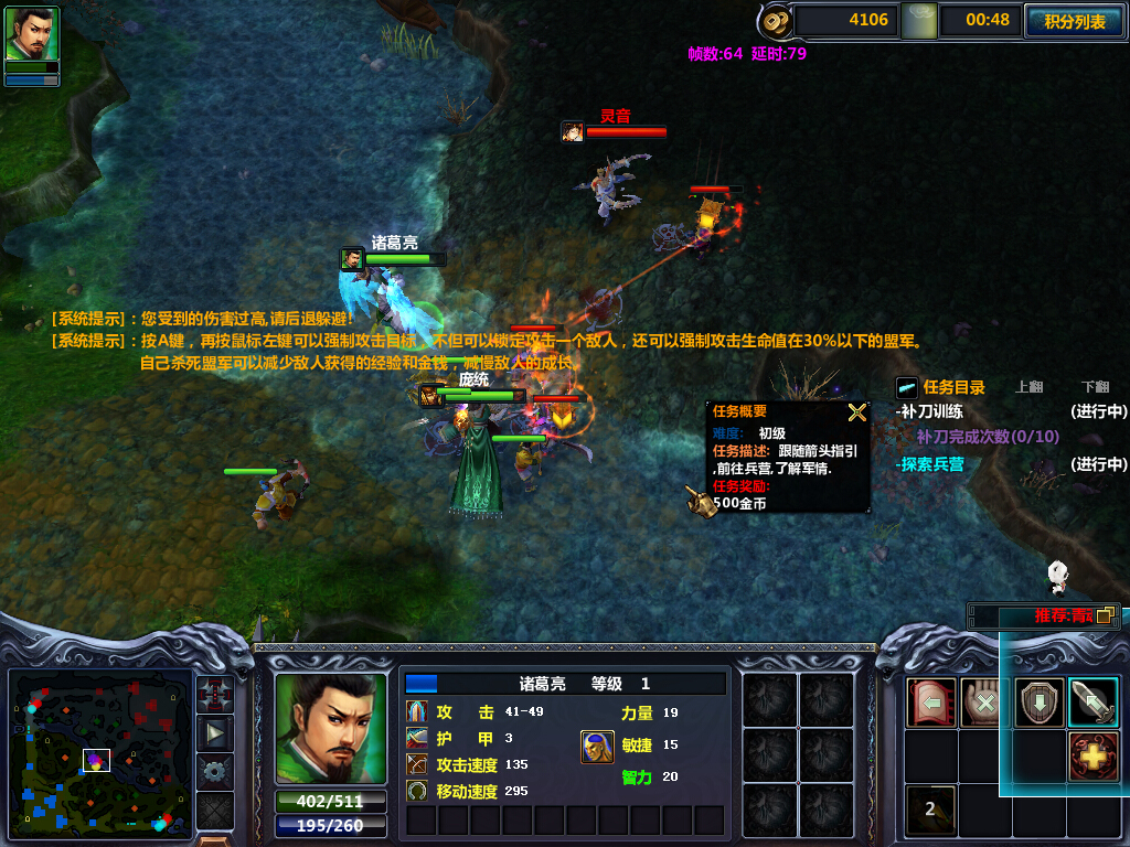 地图名称:赤壁之战.训练 地图人数限制:1-5人 过关时间限制:120分钟 地图介绍: 赤壁之战.训练地图给了新手玩家一个上战场实践的机会,让初来乍到的新人练习自己喜欢的英雄以及玩法。在这张与“赤壁之战”在地图设计上并无二致的图上,敌方以及我方的英雄有着适中的AI,掉以轻心的话还是会有被击杀的危险。从头到尾都有任务穿插其中,通过这些任务,即使是从未接触过同类游戏的玩家也可以顺利入门。另外,甜美的女声语音指引,让玩家倍感亲切,训练也会变得一点都不枯燥。 |