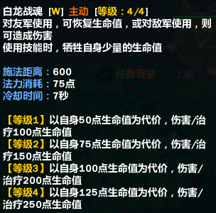 技能详解: W技能可救人,可杀人,250的血量对友方和敌人都是一个不错的输出,不定就那一下让敌人毕命。时机掌握得好,收人头那是港港的。虽然自己需要耗血,但正是如此,让赵统的这个技能使用方法多变,使用这个技能自杀或者用来破自己身上的盾是非常YD的。 加个盾相当于加了生命值,盾破了还能打人,最重要的意义也就是很多人没有注意到的,这个技能可以破负面效果,也就是说,只要你没被晕,你可以使用这个小盾把队友中的各种负面效果破除,比如甘宁的网,玲珑的净化,甚至法正的大。