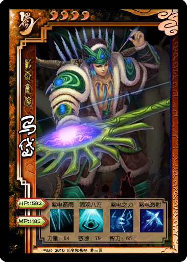 【V鉴赏】4.马岱 手握神弓的马岱还是没能问鼎榜首,马岱在三国中的唯一贡献就是斩杀魏延。马岱在梦三国中作为一个输出型英雄还有非常不错的潜力成长优势。马岱一技能可以控制敌人跟造成伤害,缺点就是该技能释放时有一个抬手的动作;二技能不但可以获得视野而且增加射程每击必中;三技能是一个被动的获得主属性跟移动速度的技能,并且可以通过该技能获得击杀英雄的敏捷值;大招是一个不错的AOE技能,可以在团战中给敌人造成不低的伤害。马岱能上我们的【微鉴赏】也是名副其实的。激射吧!西凉紫电。 弓战能力:92点