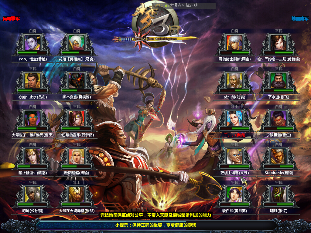 官渡之战.10V10(仅测试区测试用,未正式开放) 全新的竞技地图,支持双方各10人的阵容对战,更加刺激,更加残酷的战斗正在拉开序幕! 地图介绍: 类型:10 VS 10(袁绍 VS 曹操),三路对线 |