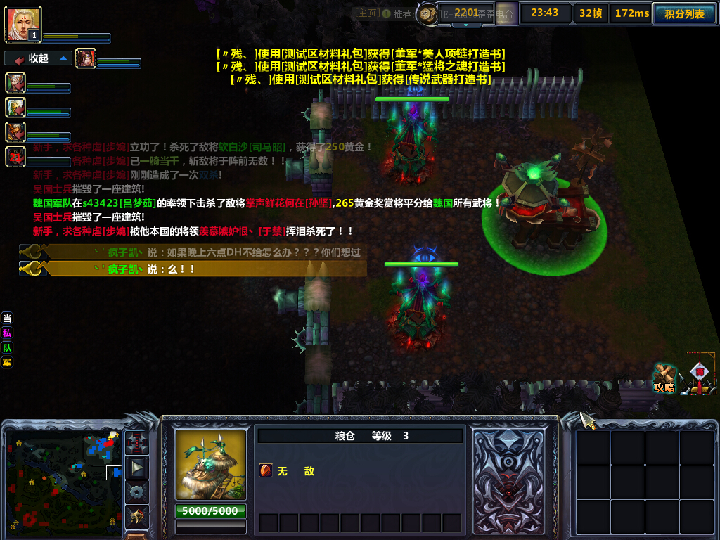 官渡之战.10V10(仅测试区测试用,未正式开放) 全新的竞技地图,支持双方各10人的阵容对战,更加刺激,更加残酷的战斗正在拉开序幕! 地图介绍: 类型:10VS10(袁绍VS曹操),三路对线 主要玩法: 双方初始金钱总数各为8500,例如一方有10