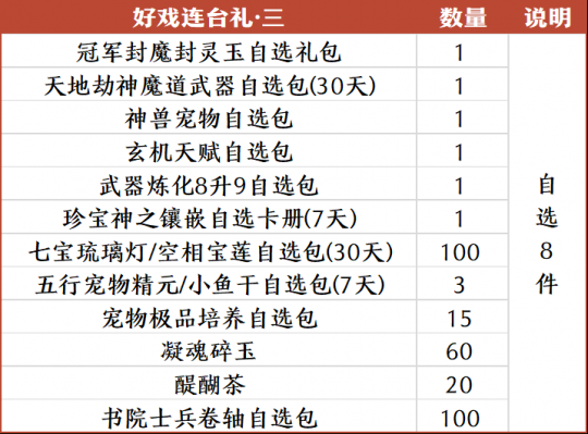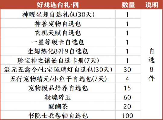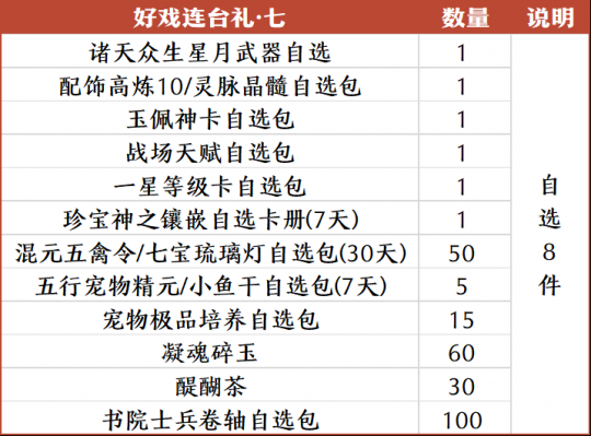 最爽的一集!梦梦如约带来两个周年庆独家消息,双重劲爆,双倍过瘾! 这其一嘛,是仙术师们心心念念的春节系列、封魔系列等153款精美换装返场!其二呢,则是自选宝物大揭秘! 庆典活动开启后,大家可以通过【星光大赏】【好戏连台】玩法,获取心仪换装和自选道具~ 群星闪耀,角逐影坛至高殊荣。今夜,所有传奇明星皆汇聚于此,等待您的审阅与青睐。它们是聚光灯下的绝对主角,是定义风尚的星光本身。仙术师阁下,您的选择,将决定今夜谁的演绎能荣膺“星光大赏”的桂冠。 仙术师购买1个旧梦放映机(扫码包)即可解锁【星光大赏】玩法。 使用闪光灯兑换自身未激活的封灵玉时,还可从自选库中选择不同品质的奖励(玩法内也提供封将之魂的兑换)。 好戏连台,精彩纷呈。在这座永不落幕的影城,所有备受瞩目的“经典剧目”皆已为您预留席位。您无需等待机缘抽选,即可直接指定心仪的角色与华服,将那份独一无二的传奇光影直接纳入珍藏。此刻,您就是最具话语权的独家投资人! 购买2个旧梦放映机(扫码包)可解锁【好戏连台】玩法:周年共计20场好戏,仙术师可使用闪光灯,从每场好戏的自选库中任选8件道具打包带走。 活动期间购买的旧梦放映机(扫码包)越多,能解锁的场次越多,如购买2个可解锁前4场好戏礼包。 星光大赏-换装返场 【星光大赏】中可兑换的封灵玉包括姜维等春节系列、梦祝融等封魔系列、潘凤等敦煌系列共计153款!可滑动框内列表查看—— ●新增封魔&冠军&元宵系列:马超*西凉锦将、诸葛亮*帝王师、梦*祝融*九命御猫、马谡*追风神捕、梦*姜维*瓯越耀武、梦*蔡文姬*瓯越清音、潘凤*敦煌极乐、张飞*敦煌无量、于禁*敦煌金刀、孔融*敦煌雅贤、周泰*不屈虎臣、梦*刘禅*饕餮魔童、刘备*飞龙传情、孙尚香*娇龙画意: ●新增春节&春宴系列:刘协*真龙贺岁、梦*关羽*战龙除岁、梦*袁绍*异龙闹春、姜维*龙宫太子、悟空*三分月金睛、梦*萝莉*三分月花朝、梦*刘禅*三分月东旭、司马昭*三分月映昭: ●新增嘉年华&预热系列:梦*祝融*广寒仙子、张鲁*天河神官、太史慈*乱世烈胆、法正*金桂树灵、猪无能*天河神将、邢道荣*月宫伐桂、凌统*馥郁童趣、辛宪英*馥郁童梦、曹丕*永乐明君、张莺莺*飞莺锦衣: ●新增征战系列:布小蛮*灵芝有毒、韩当*当归逍遥、孙坚*白虎神君、许褚*佛手金刚、魏延*冲锋棋魂、公孙瓒*战帅棋魂、周仓*不悔棋魂、关平*青龙神君: ●往期嘉年华及预热系列:梦*孙玲珑*金牌荣光、貂蝉*金牌飞鸿、诸葛亮*金牌军师、刘表*金牌龙王、程昱*金牌剑豪、孙权*金牌大帝、周仓*古塔降魔人、灵音*西湖兔灵、颜良*华夏功夫、左月*东方花艺: ●往期征战系列:关凤*踏燕星宿使、梦*孙策*战鼎星宿使、司马懿*司尊星宿使、梦*庞统*朱雀神君、文丑*千爵星宿使、陆逊*畲风少年、庞德*畲乡守望、甄宓*畲神娘娘、周泰*畲土豪情: ●2023春宴系列:蒲元*三分月霹雳、张辽*三分月流火、猪悟能*三分月震天、顾雍*三分月燃星: ●2023冠军庆典系列:梦*刘禅*东岳战神、梦*周瑜*西岳战神、梦*刘璋*南岳战神、大乔*北岳战神、曹植*中岳战神: ●往期征战系列:吴凤熙*红颜火帅、步婉*徐林妙姝、夏侯渊*疾风鬼将、吕轲*山雷之魂、关羽*武财神、马谡*青城天师、孙鲁班*诡月灵煞、张莺莺*诡月幽魅、曹洪*诡月凶祟、黄月英*常羲沐月、李典*跳神祈霖、乐进*跳神祈丰、吕梦茹*洱海跳月、袁绍*帝舜: ●封魔系列:袁术*万灵白龙、梦*袁绍*冰霜之怒、梦*曹操*焚天之威、梦*孙权*金狮少年郎、梦*孙策*金狮游侠儿、鲁肃*兑泽云德使、高顺*坤地神武使、甄宓*坎水霓裳使、司马懿*惊雨巫傩、钟会*艮山堪舆使、夏侯惇*离火夺命使、孙权*乾天和平使、蔡文姬*苗疆圣女、徐庶*天才剑客、张绣*沙海之枪、梦*马超*墨梅盗帅、梦*孙权*华山之主: ●嘉年华系列:左慈*彩霓画中仙、马岱*梦境猎人、法正*大国之棉、张郃*孤野镇魂人、暗影吕轲*梦海云兴、布小蛮*梦海云依、董卓*鱼塘霸主: ●春节系列:颜良*福虎生财、文丑*福虎生威、孟获*牛转乾坤、庞德*牛魔王、荀彧*卯兔接财、梦*萝莉*玉兔迎彩、关平*围炉守岁、曹操*飞鸢帝君、卞玉儿*飞鸢帝后: ●预热系列&冰雪系列:孙坚*萤光漫天、吴凤熙*月夜流萤、步婉*雪里惊鸿、华佗*老君布道、梦*凌统*彩虹独角兽、梦*辛宪英*梦幻独角兽、许褚*天山来客、公孙瓒*案上乾坤、钟会*冰原狂啸、孙权*凛风霜雪: ●2022冠军庆典系列:梦*庞统*扬帆弄潮儿、黄舞蝶*蝶漾弄潮儿、张纮*百川弄潮儿、黄盖*倒海弄潮儿: ●2021冠军庆典系列:曹操*王道大宗师、黄月英*星月大宗师、公孙瓒*逍遥大宗师、孙鲁班*精武大宗师、孙坚*驭兽大宗师: ●2020冠军庆典系列:梦*马超*三分月无畏、糜竺*三分月无悔、徐晃*三分月无惧、刘璋*三分月无虑: ●诗月冠军系列:应龙*诗月腾飞、文鸯*诗月高杠、灵音*诗月旋舞、颜良*诗月回环、马超*诗月纵马、马云禄*诗月高歌、蔡文姬*诗月流芳、梦*姜维*诗月齐鸣、梦*辛宪英*诗月长吟、司马懿*诗月华章: ●2020春宴系列:韩当*盛世神探、梦*蔡文姬*盛世幻舞、梦*司马昭*盛世匠魂、吴凤熙*盛世女皇、梦*姜维*盛世七绝: 仙术师使用闪光灯兑换封灵玉时,还可从自选库中选择不同品质的道具奖励带走。 自选库奖励分为完美、极品、精品3个品质,封灵玉的价格决定其能带走不