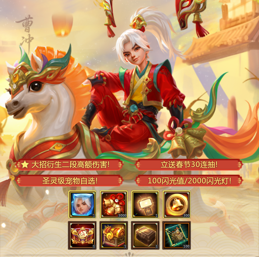 梦三国:免费128抽起!领强力换装、武器宠物、最新材料等超值贺礼!