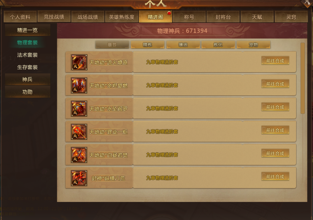 精进阁优化:新版本在精进阁中增加了“精进一览”功能,便于仙术师更直观地查看和比较自身装备的合成、强化情况。