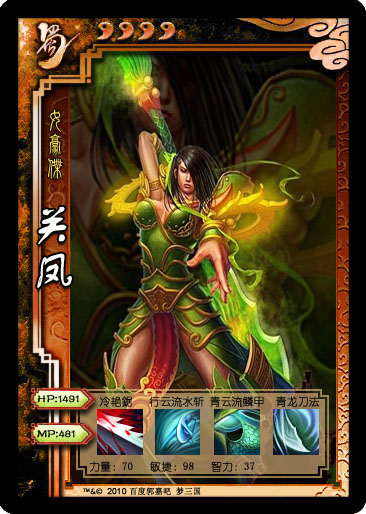 敏:姜维赵云关平黄舞蝶关凤马岱马云禄马超蒲元黄忠黄月英