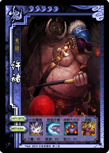 力:于禁许褚曹彰庞德曹洪徐晃典韦张辽夏侯惇